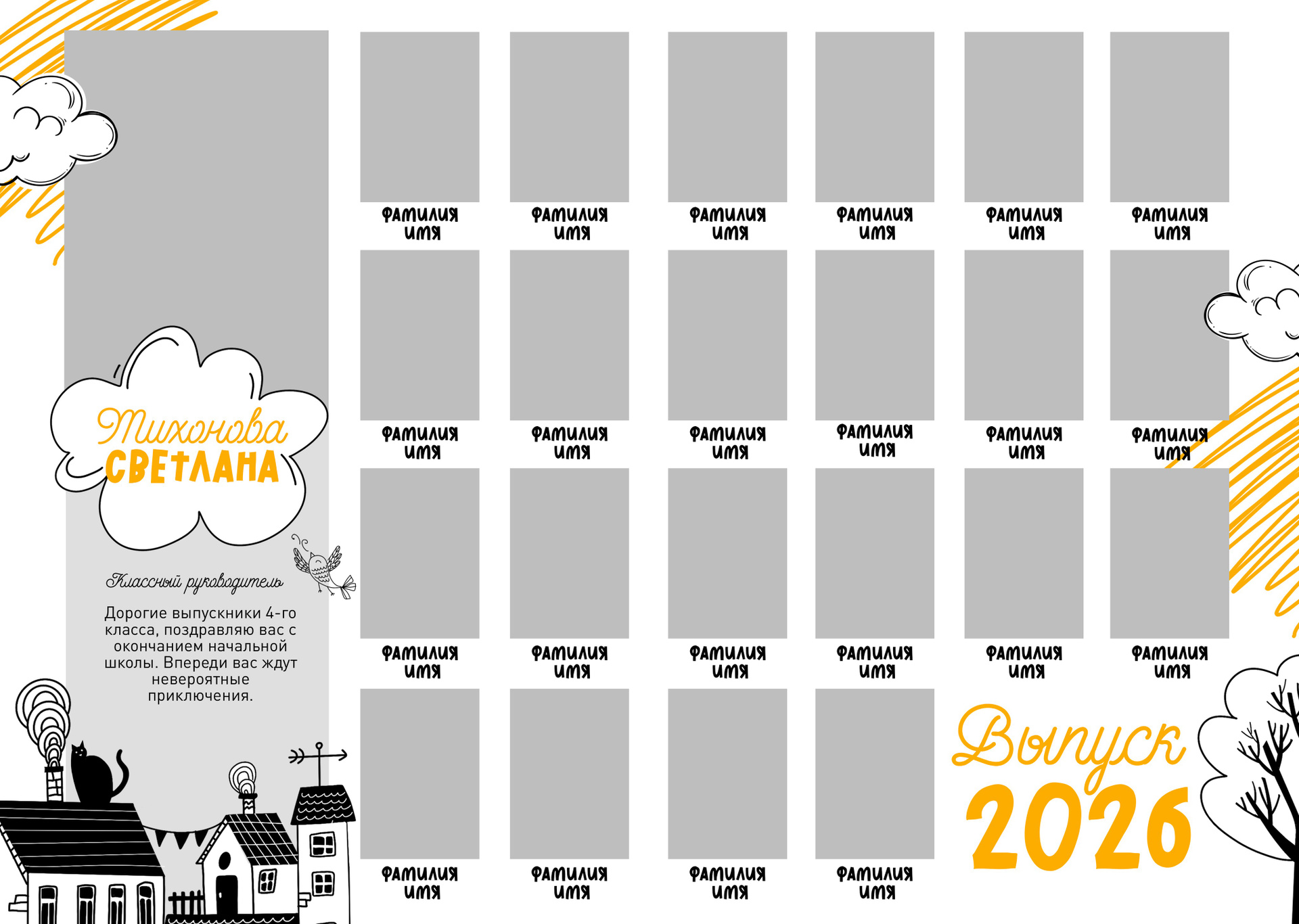 - виньетка (портрет учителя и всех детей с подписанными фамилией и именем)
