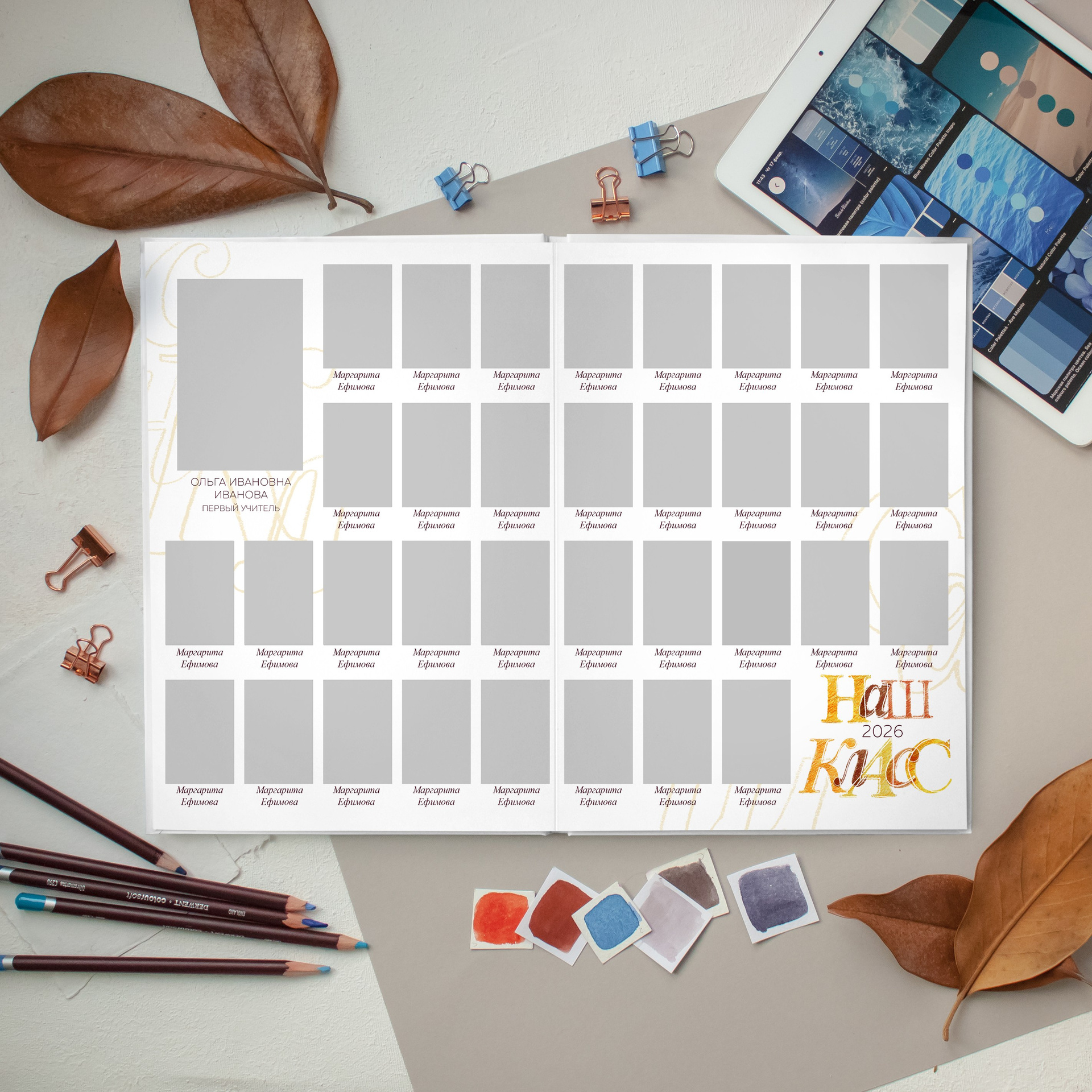 - разворот с виньеткой (портрет учителя и всех детей с подписанными фамилией и именем